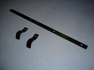 Some simple brackets made up from 5mm steel strip. B&Q had exactly the right piece of steel available from which to cut these. The brackets were given a quick couple of coats of Hammerite.