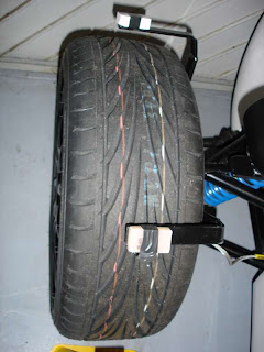 Then the stays were bent in the vice, ensuring that the upper part remained parallel with the tyre. Due to the bending of the stays some of the powder coating flaked off. Some Hammerite was applied to prevent rusting.